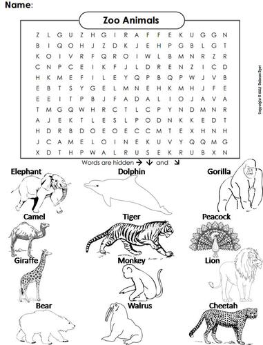 zoo animals word search allfreekidscraftscom - jungle animals word search | printable zoo animals word search.